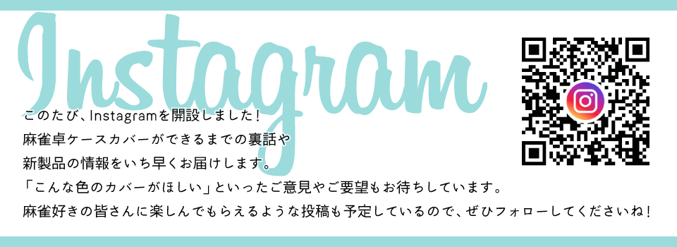 ケースカバー関係 インスタグラム開設しました。 2025年9月30日 2025年9月30日 ぱんちゃん 先日オープンしたばかりの雀卓専門通販サイト「jyantaku.shop」のInstagramを始めました! 新製品の紹介や、開発の裏話など、「へぇ〜!」となる情報から「欲しい!」となる商品まで ぞくぞくお届けします! お楽しみに♪ 長崎県の麻雀卓の購入と修理は、株式会社ニルにお任せください!ケースカバーとのセットなら、さらにお得です!! Facebook postLINE